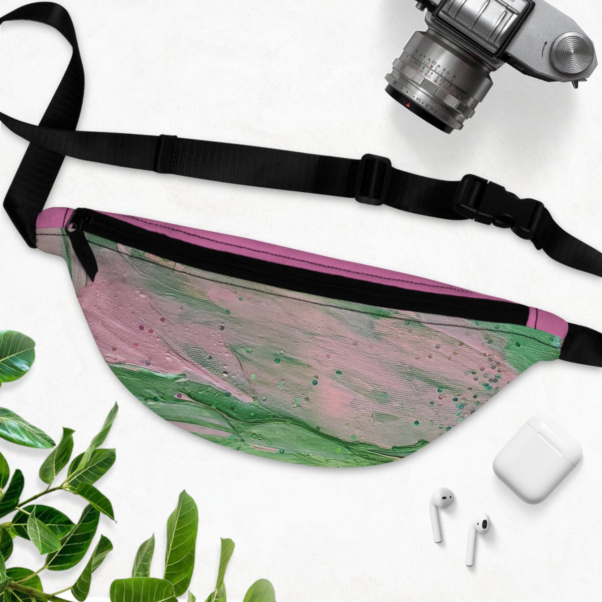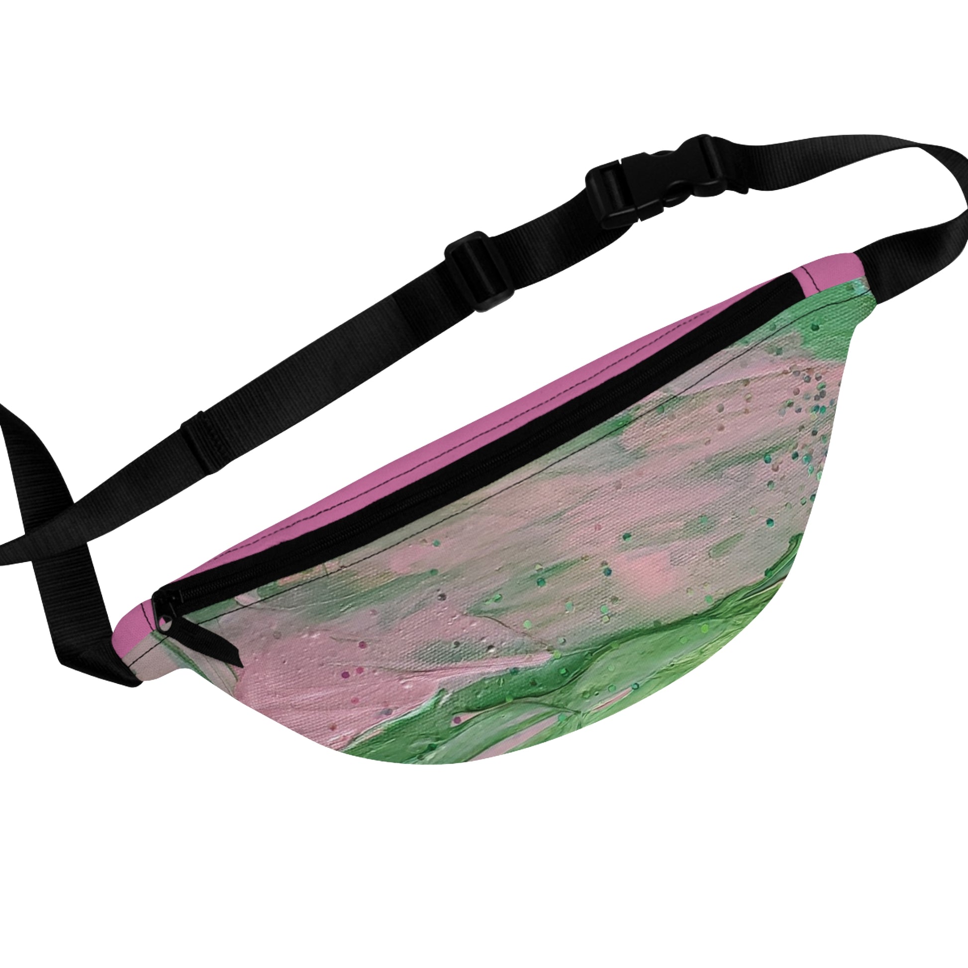 Trendy lightweight bag that includes an adjustable strap to fit any waist while lying flat against your body. The back panel is made to protect from wear and tear and is easy to clean. Your pack includes a back zipper, an inside zipper pocket, and 3 cardholders. It also features an adjustable handle with a clip and a liner with an inside divider which is great for organizing. This design pops.