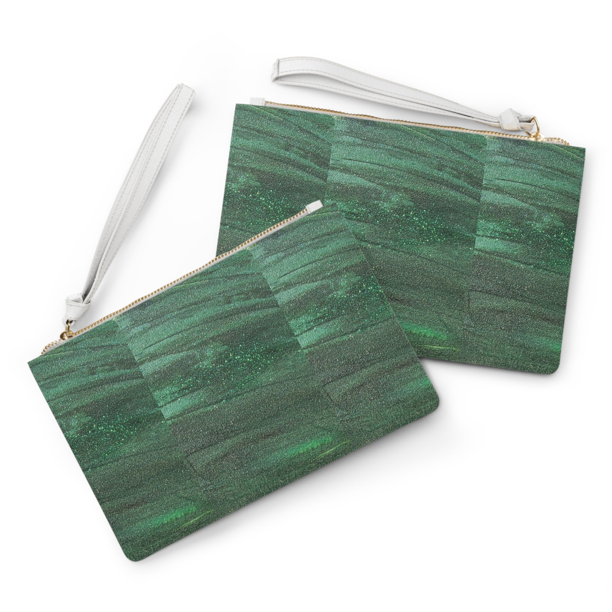 Designed with a loop handle to quickly free your hands, this custom clutch bag is made for the fashionista on the go. Use for everyday essentials such as a phone, wallet, and keys. Features a zip closure and a fully lined internal pocket. It is made of vegan leather in the Saffiano finish that was invented by Prada.